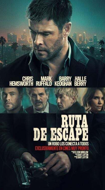 Ruta de escape reúne a un elenco potente encabezado por Chris Hemsworth, quien interpreta a un ladrón meticuloso que busca ejecutar su último gran golpe. Lo acompañan Halle Berry, que aporta humanidad y tensión emocional como una ejecutiva atrapada en el mundo del crimen. Mark Ruffalo como el policía obsesionado que intenta detenerlo, y Barry Keoghan como un criminal impredecible que añade peligro constante a la trama. Todos ellos, con trayectorias destacadas en cine (desde Marvel hasta dramas premiados) sostienen con solidez el pulso del thriller.