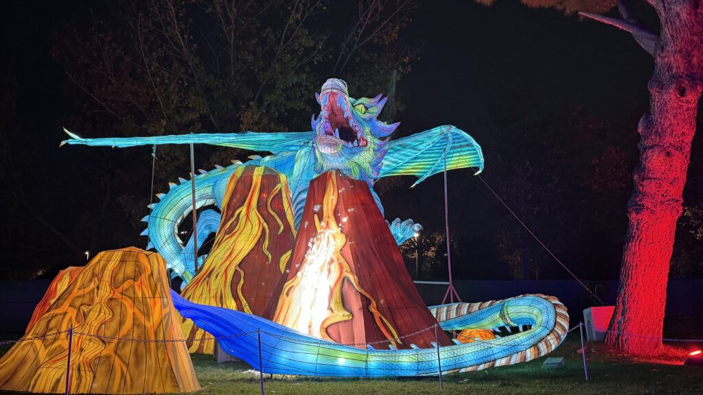Desde que entras en “Brilla Zoo”, la ambientación es perfecta. Durante todo el recorrido hay luces y música que llamará la atención de los niños. El recorrido se organiza alrededor de un gran río central. Lo que más destaca son todas las esculturas luminosas con movimiento como el unicornio o el dragón, que también echa fuego.